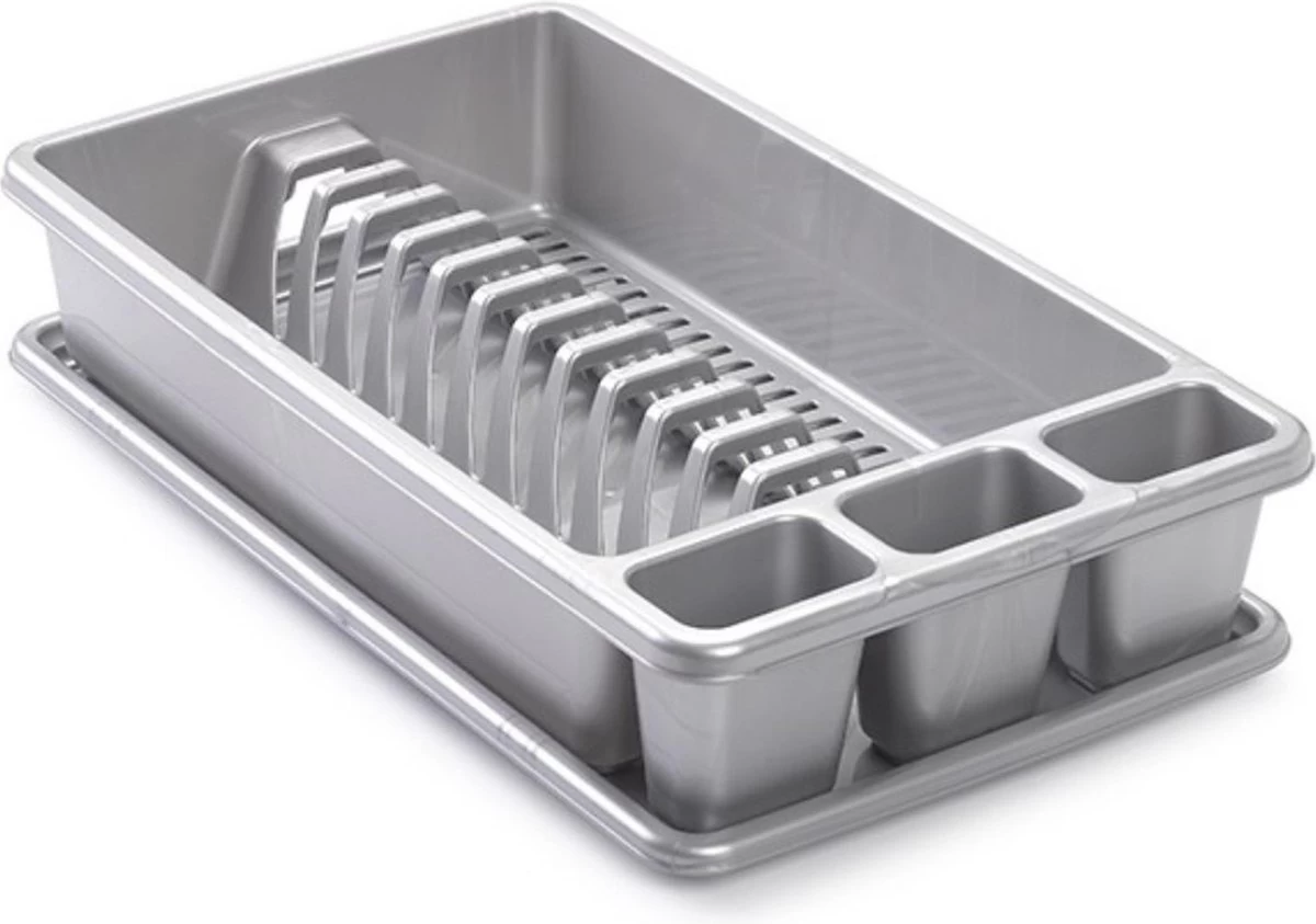 Afwas Afdruiprek Zilvergrijs Kunststof 45 X 26 X 9 Cm – Afwassen/drogen Met Lekbak