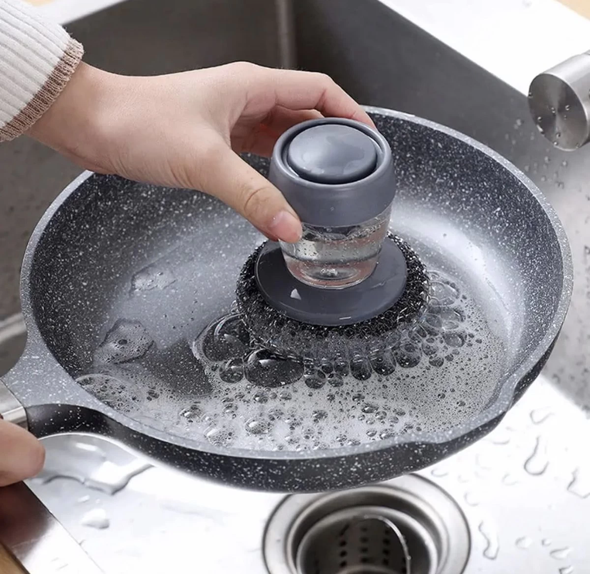 Afwasborstel Met Zeepdispenser – Met 3 Verschillende Opzet Stukken – Inclusief Houder – Grijs – Afwas Borstel Zeepreservoir – Zeep Handborstel – Doseerpomp – Afwasmiddel Dispenser – Navulbaar