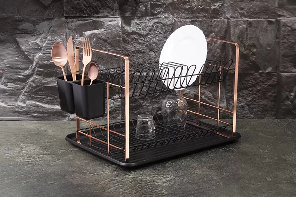 Dit prachtige afwasrek van Berlinger Haus is niet alleen praktisch maar ook een stijlvol vaataccessoire voor in je keuken. Het wordt geleverd in een mooie zwarte en rosé gouden kleur.