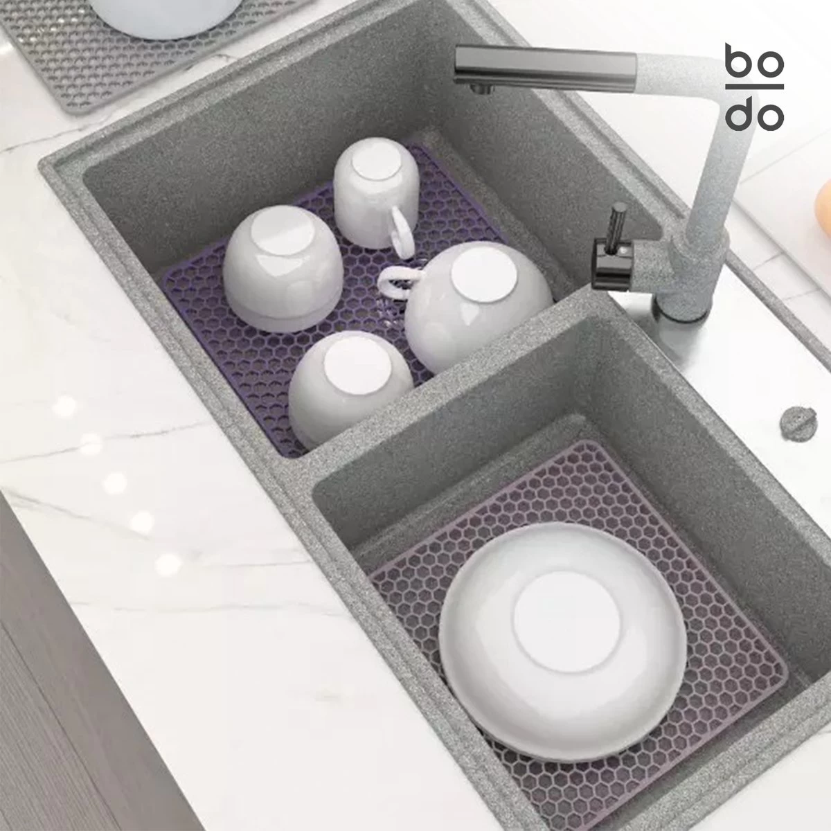 BODO Gootsteenmat Siliconen Donker Grijs – 34.5 X 34.5 Cm – Keuken Accessoires – Gootsteen Beschermer – Onderzetters Siliconen – Anti Kras