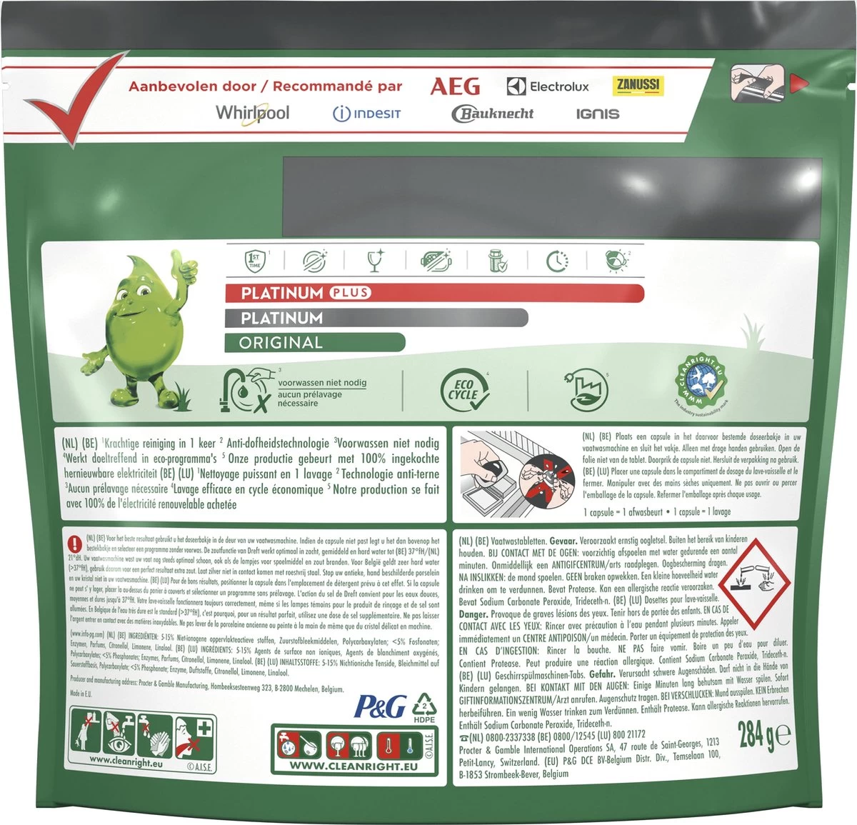 Dreft Original All in One vaatwascapsules leveren direct een grondige reinigingsactie en zijn zelfs effectief op aangekoekt vet, voor een sprankelend schone vaat. Dreft combineert vloeistof en poeder in één krachtige capsule. Het ultra-oplosbare zakje lost snel op, zodat het snel begint te reinigen om de klus klaar te krijgen. En ze zijn gemakkelijk te gebruiken. Plaats ze gewoon in het doseerbakje van je vaatwasser, met verpakking.