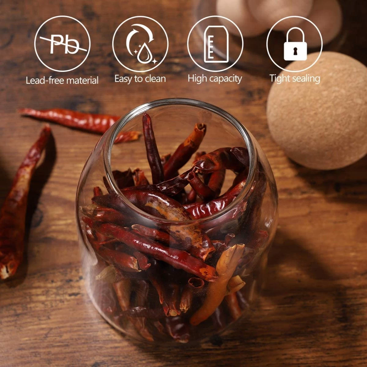De kurkbal geeft een elegant tintje aan dit simplistische ontwerp dat er zeker geweldig uitziet in elk huis, café of restaurant. Gemaakt van glas om duurzaamheid en gemak te garanderen. De Igoods potten zijn voedselveilig, gemakkelijk in onderhoud en een geweldig alternatief voor plastic.