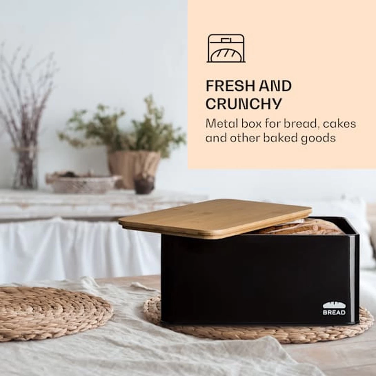 Klarstein Granrosi Oklahoma Broodtrommel – 35,5 X 15,5 X 23 Cm – Brooddoos Met Snijplank – Metaal & Bamboe