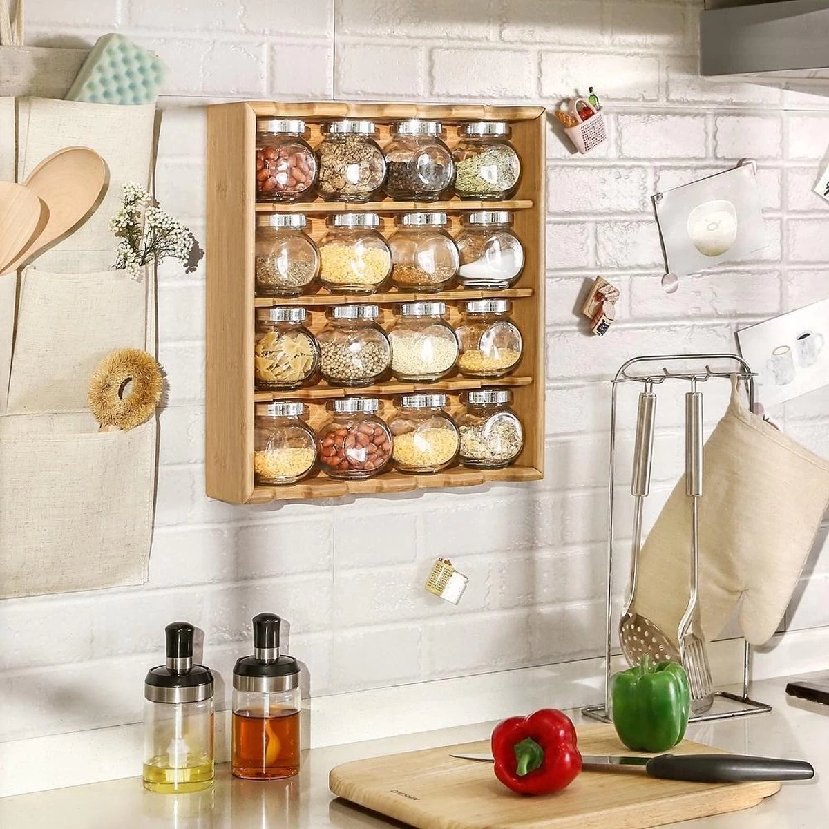 Het rek is erg praktisch en ruimtebesparend. Je kan het rek staand op het aanrecht gebruiken maar het is gemaakt om aan de muur te hangen. Ophangen is dan ook makkelijk. Door dit rekje heb je al je kruiden georganiseerd bij elkaar staan. Dat bespaart je veel zoekwerk onder het koken.