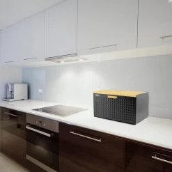 Luxe Broodtrommel Zwart Met Bamboe – Brood Bewaardoos – 36x21x21CM – Rechthoekig