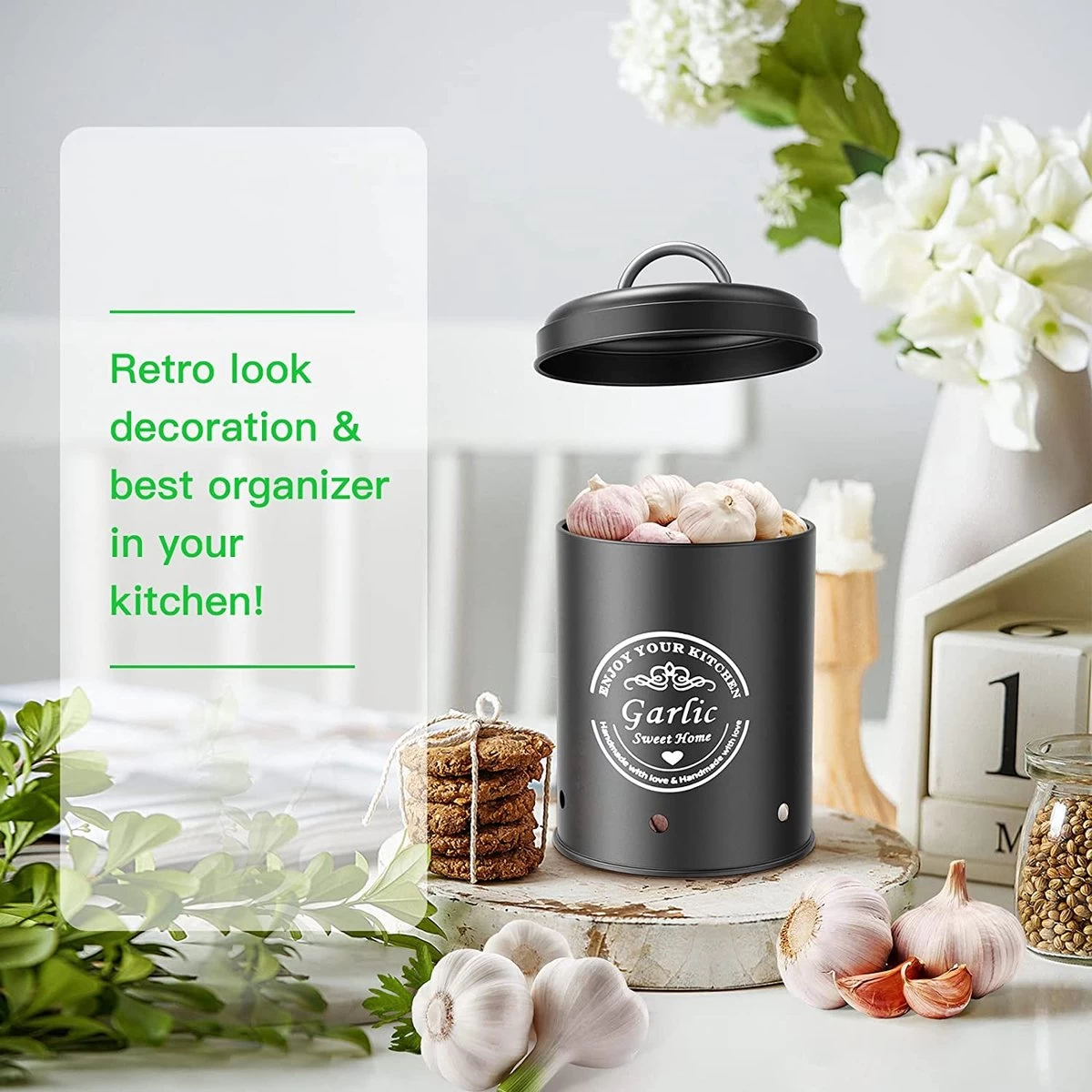 Professionele Bewaardozen – Set Van 3 – Voor Aardappels, Uien En Knoflook – Retro Design – Voorraadcontainer Van Metaal – Keukenopslag – Groentes Bewaren Voor Lange Tijd – Perfect Cadeau Voor In De Keuken