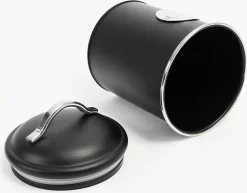 Merkloos Theeblik – Kruidenblik – Voorraadblik – Bewaarblik – Met Aroma Deksel – Zwart – 4 Stuks